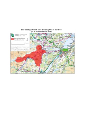 Map showing the Core Breeding Area for the pine tree lappet moth (Dendrolimus pini) in Scotland