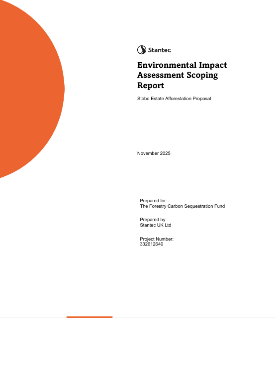 EIA Scoping Report - Stobo Last updated :31 Mar 2026 Topic: Manage forests Sub topic: Environmental Impact Assessment Applicants submission to Scottish Forestry detailing subjects and methodology to be covered within the EIA report. EIA Scoping Report - Stobo PDF | (1.48 MB ) This file might not be suitable for users of assistive technology. Please contact us to request an alternative format. Share this page with others Copy link Email LinkedIn Facebook X formerly Twitter
