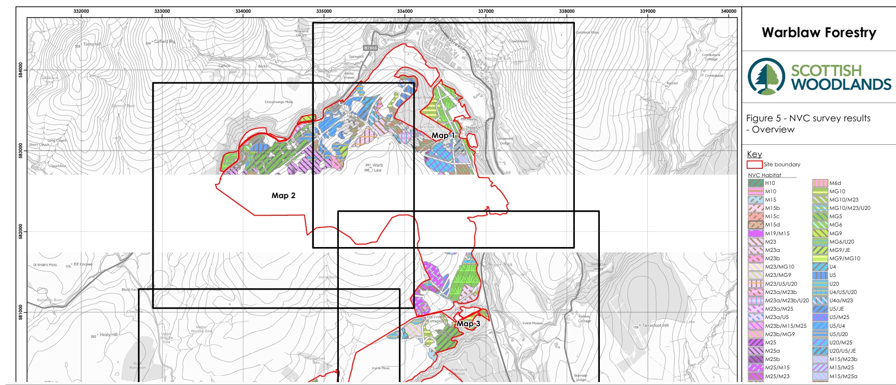 Warblaw Appendix A - Figure 5 NVC Survey Results (OS - Detailed) Last updated :24 Mar 2026 Topic: Manage forests Sub topic: Environmental Impact Assessment Map showing National Vegetation Classification habitats present in proposed planting areas. Warblaw Appendix A - Figure 5 NVC Survey Results (OS - Detailed) PDF | (12.08 MB ) This file might not be suitable for users of assistive technology. Please contact us to request an alternative format. Share this page with others Copy link Email LinkedIn Facebook X formerly Twitter